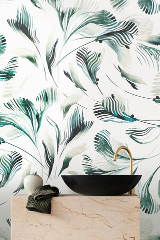 Rendered in Emma Hayes’ signature watercolor hand, Palm is a tonal study in light and movement. Fronds drift softly across the surface, their edges blurred as if caught mid-breeze.