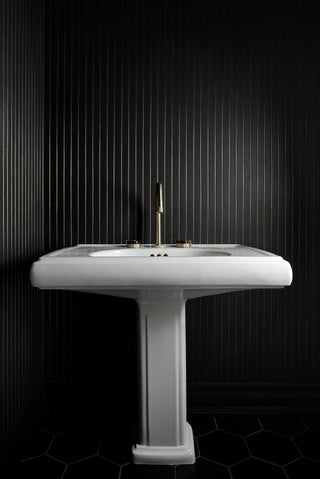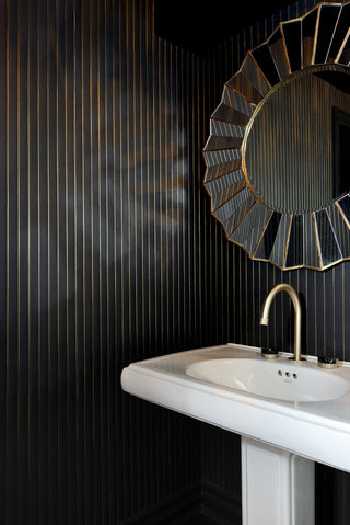 Here in the NewWall Showroom, every detail is considered, from the largest mural to the smallest trim. This month, we’re taking you on a tour of our lower-level washroom. With its noir palette and layered mix of finishes, it’s a space that shows how thoughtful styling can bring depth and drama to even the most compact rooms.