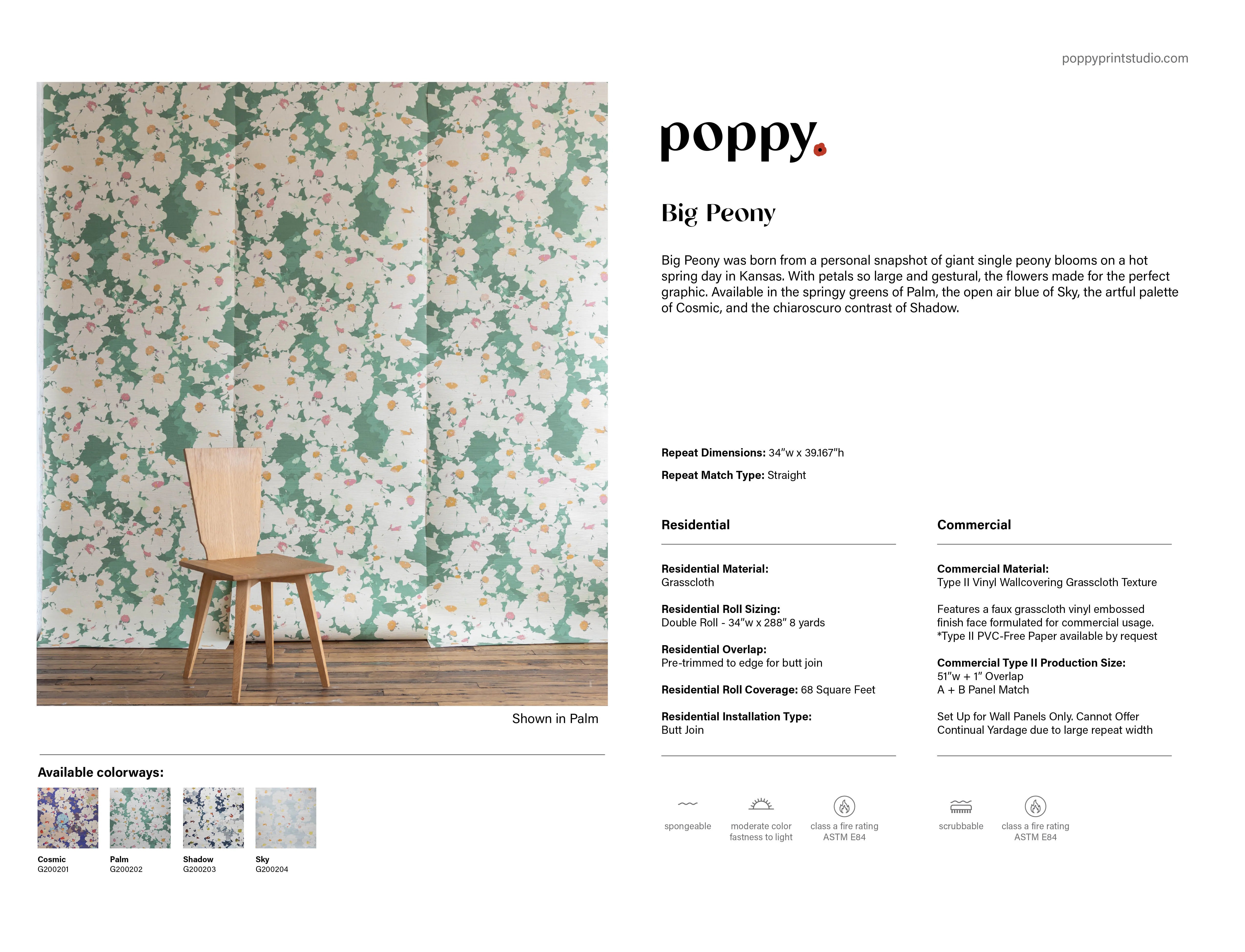 | Residential: | ["Format: Roll"Substrate: GrassclothDimensions: 34"wide x 8 yardsHanging method: Pre-trimmed to edge for butt jointsWall coverage: 68 sq. ft."Lead-time: 2-4 weeks"] |