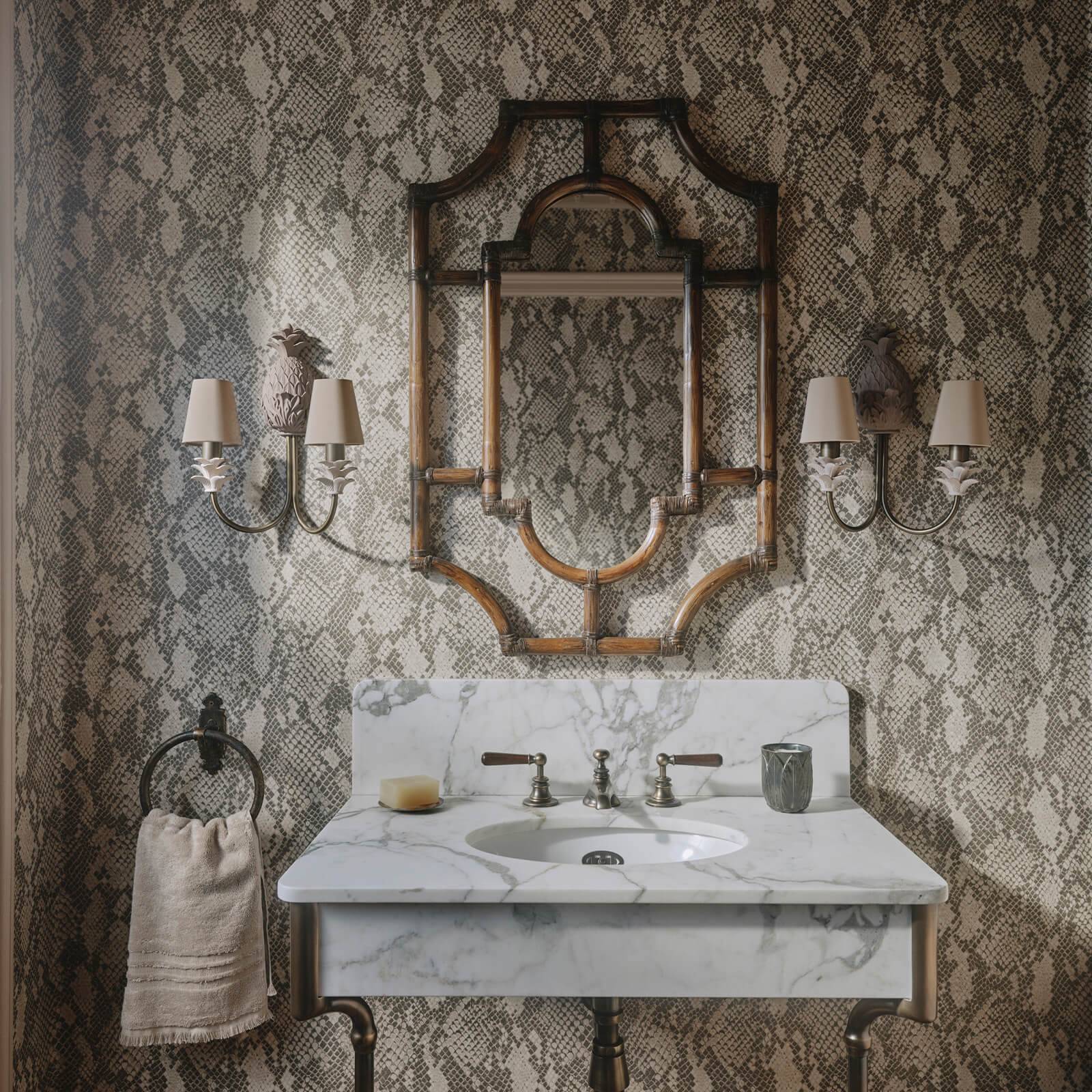 Created in collaboration with The Snake, welcome serpentine subversion into your interiors with the COBRA snake-print wallpaper. The chic, hypnotic scales of snakeskin are hand-painted in meticulous detail, capturing the beauty and intricacy of our perilous partner.