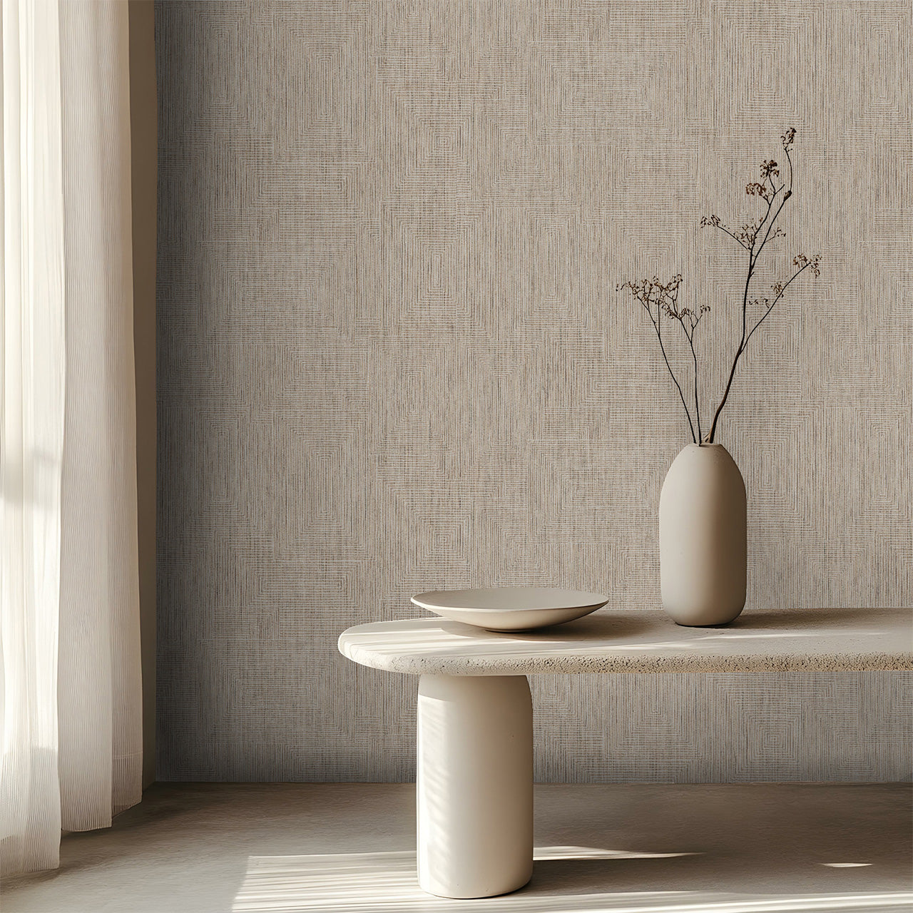 The "Rio" wallpaper combines artisanal inspiration with a clean, timeless style. Its fine texture is reminiscent of woven materials and creates a warm, inviting atmosphere. The structured surface adds depth and character – calm, modern, and natural all at once.